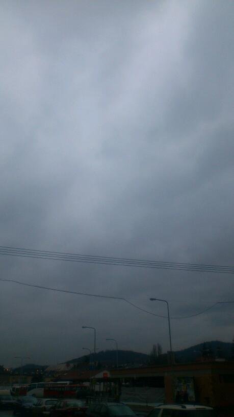 Dost prší, tlak 1008 hPa, vlhkost 94%, vítr J, 0,8 m/s.