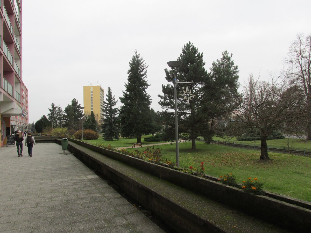 Na obloze stále jen šeď, tady ale hezky obalila i stromy a trávu
