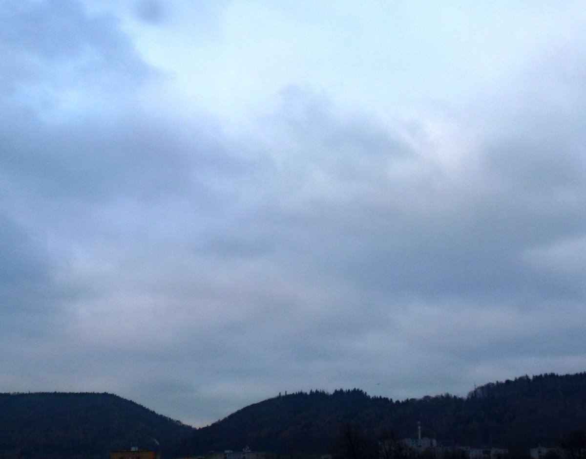 Skoro zataženo,slabý vítr,tlak 1024hPa.Náznak protrhávání oblačnosti.