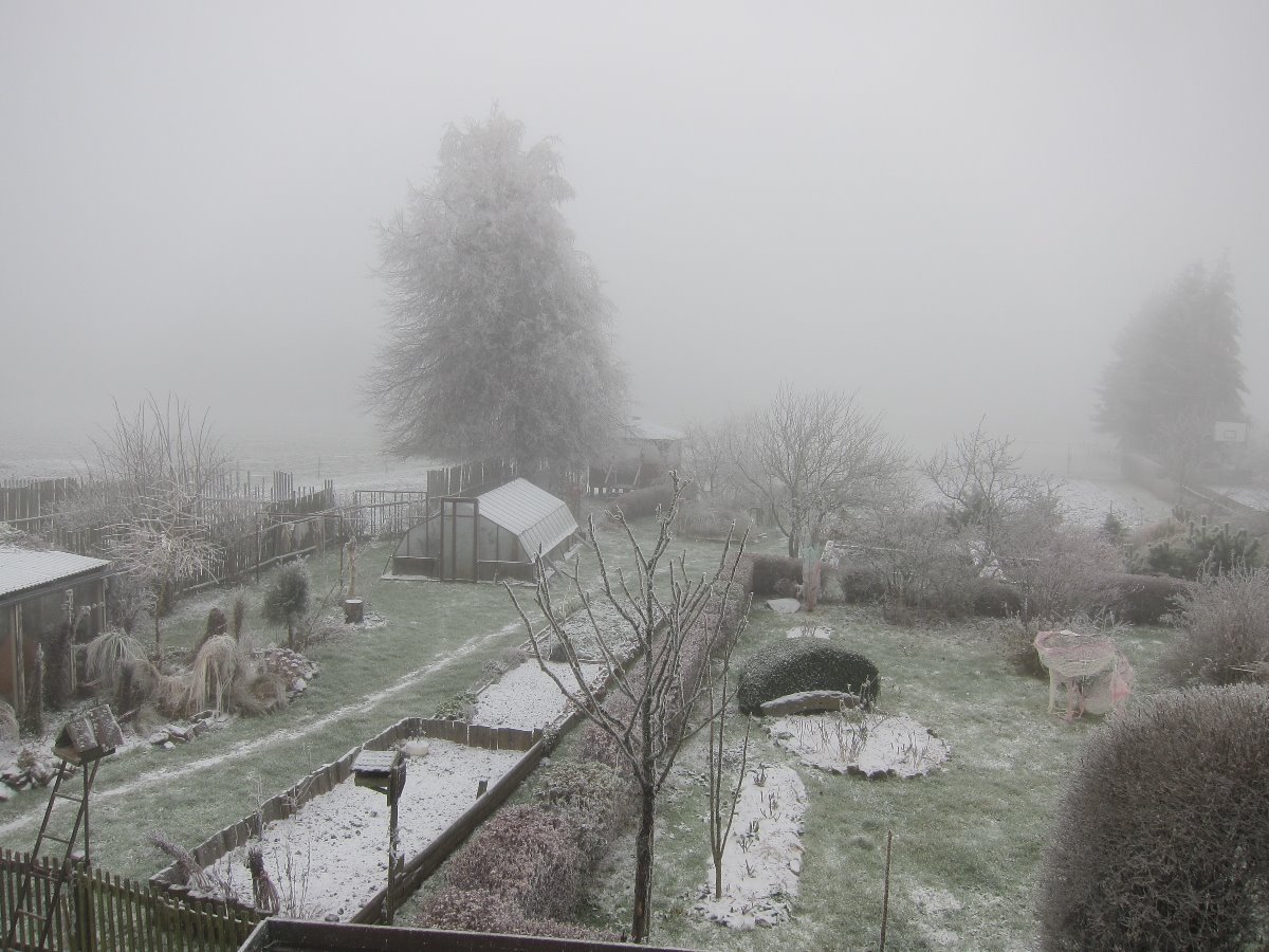 Mlhavo, mrholí, slabý JV vítr. Situace s ledovkou se poněkud zlepšila.