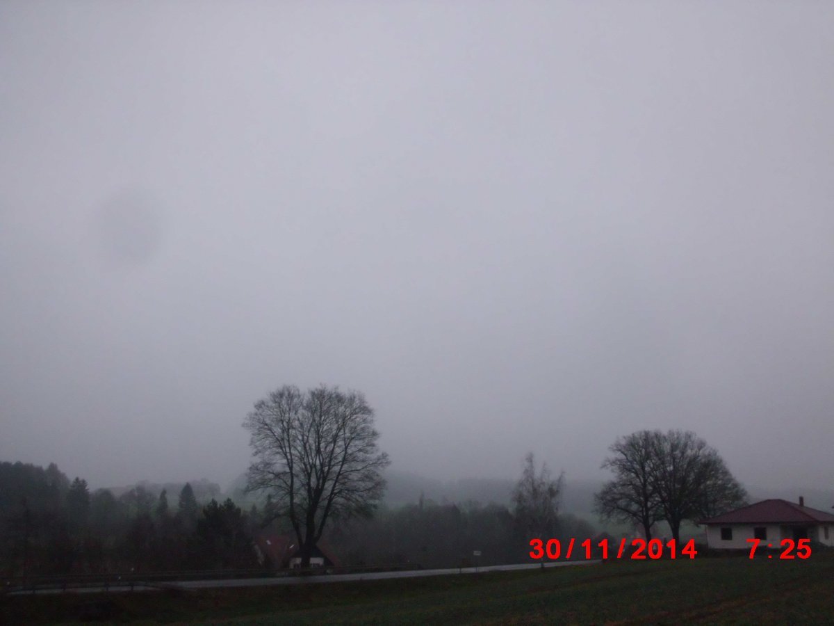Oblačno,lehce kouřmo,téměř bezvětří.Stav setrvalý.