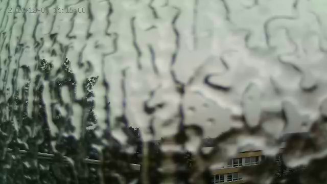 ráno kolem 8 hodiny 0°, najednou kolem 12 hodiny mokré střechy - a že něco padá viz foto z 2014 12 01 v 13:50 je znát na větvičkách - není to klasický déšť ale sníh taky ne, fouká vítr