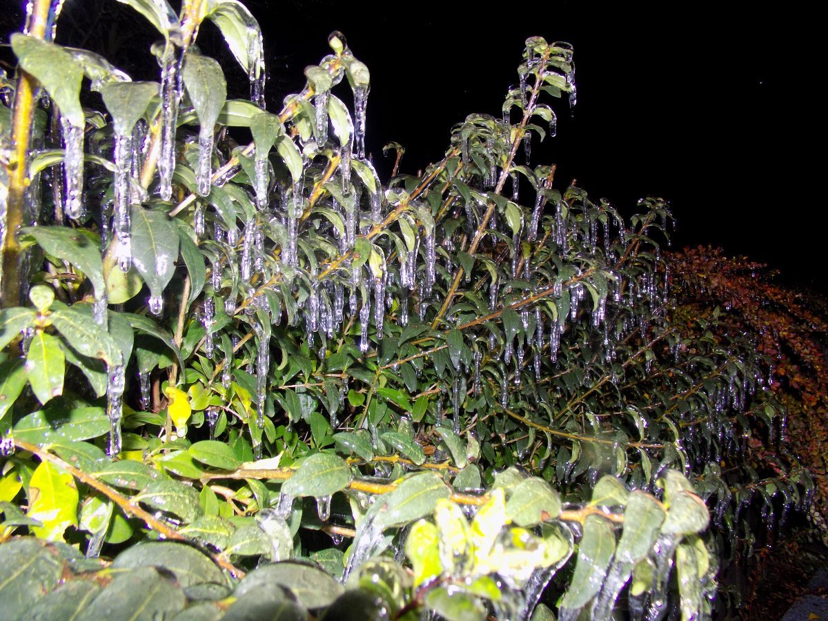 slabý mrznoucí déšť, námraza hlavně na stromech místy ledovka