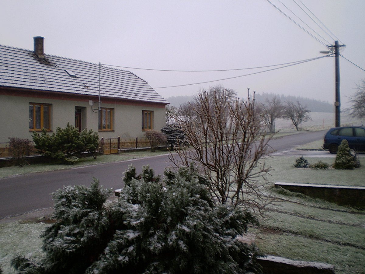 Ledový déšť vystřídalo prudké sněžení. Všude bílo,chumelí tak silně, že auta téměř nemají šanci ani vyjet na silnice.