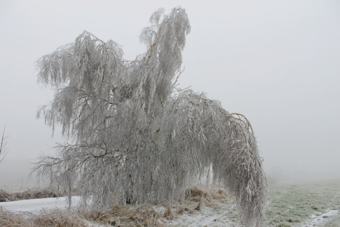 Stále slabě sněží, na silnicích již bláto, že se nedá ani přes tu břečku přejít silnice.