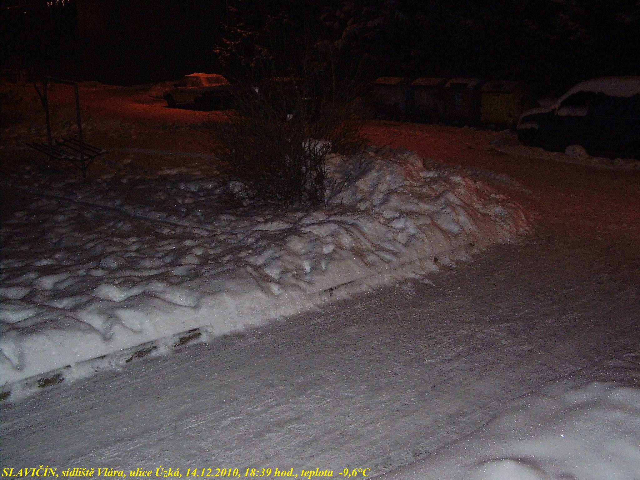 Zataženo,sněží.Vítr ZSZ 17 km/hod.,vlhkost 93%,tlak 1013,7 hPa, viditelnost 4500 m.