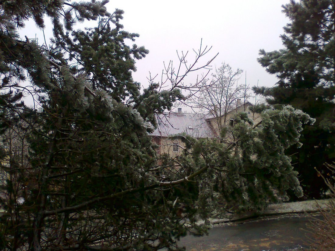 Ledovka ze včerejška stále trvá,ráno už jen slabě sněžilo.Tramvaje nejezdí ani dnes,a vlaky prý taky moc ne,slabý vítr,vlhkost 83%.