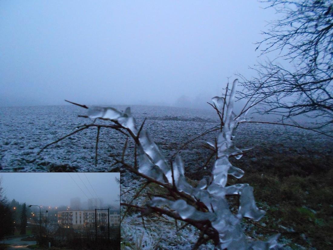 snímek pořízen 3.12.2014 v 15:50 hod/ mlha,námraza opadává drží se už jen místy a zanechala po sobě spousty polámaných stromů,pocitová teplota -4°C,rychlost větru 2.5m/s,náraz větru 6m/s,vlhkost 100%,tlak 1019hPa