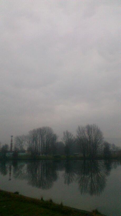 Mlha,námraza už opadala, drží se už jen na kopci a na poli je slabý zmrzlý poprašek