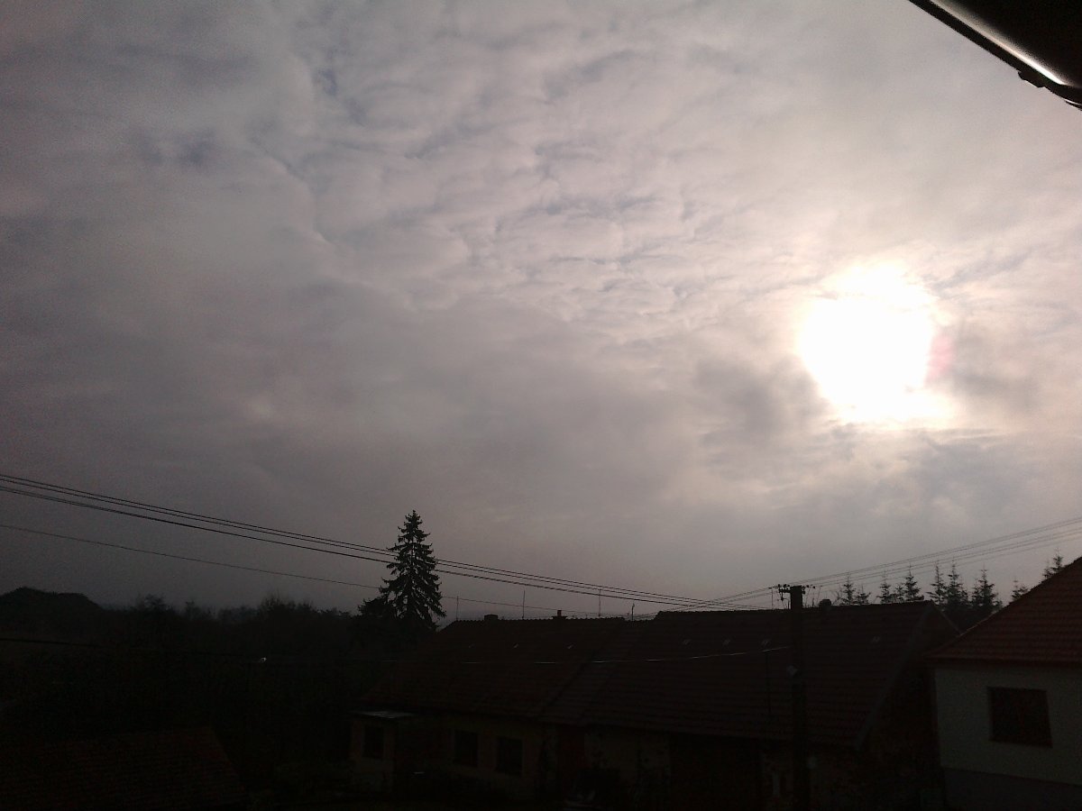 raní šedá obloha se začíná protrhávat viz foto z 2014 12 04 v 08:55, trochu fouká vítr - studený