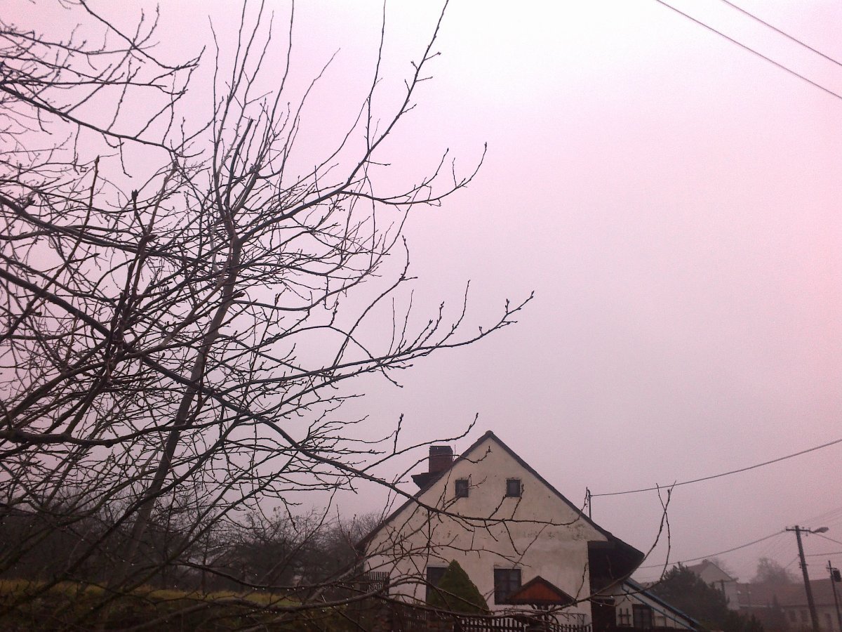 je zde mlhavo, občas jemně prší - foto z 2014 12 06 v 09:29 nezachytilo kostelík v Markovicích
