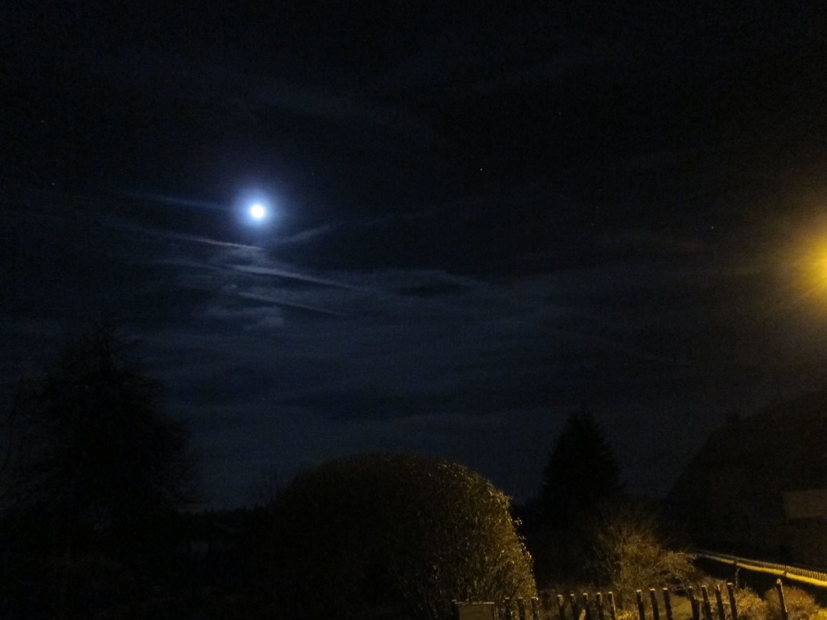 zataženo,mlha,která se teď zvedá... měsíc s aurou ....u země mrzne,stébla trávy jsou jak bodliny