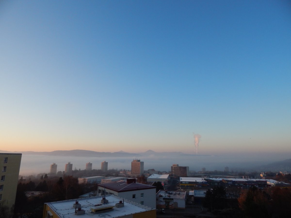 Oblačnost 87,1%, zákl.oblačnosti 704,87m, tlak 1023,3hPa, dohlednost 25km, rel.vlhkost 82,4%, abs.vlhkost 3,75g/m3, SSV větřík 15° 3,1m/s(2 Bft), poc.teplota -4,67°C, tepl.rosného bodu -3,54°C, tepl.mraků -7,84°C, ochl.větrem -5,04°C.