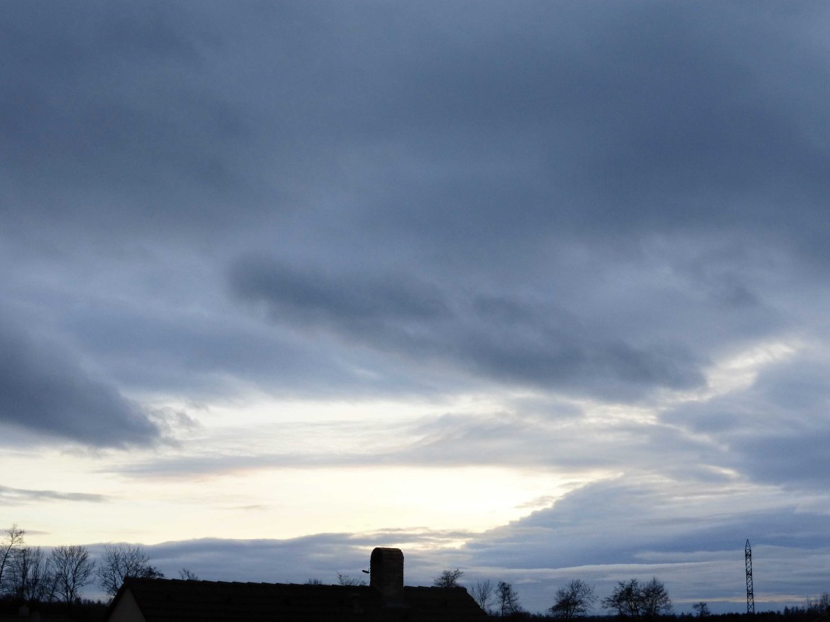 Tlak 1015,1 hPa, nadále jen slabý JZ vítr.