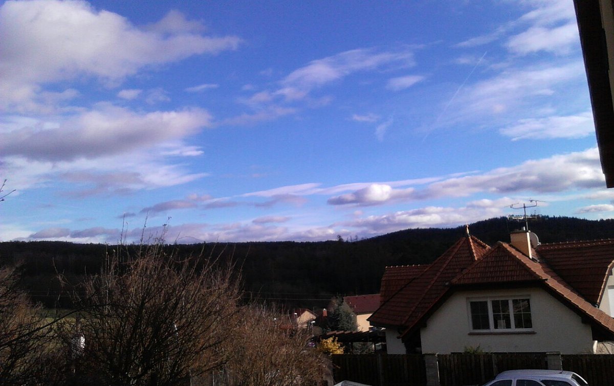 Od západu přibývání oblačnosti, vítr západního směru v nárazech 26 km/h, tlak 1016 hPa a vlhkost 77 %.