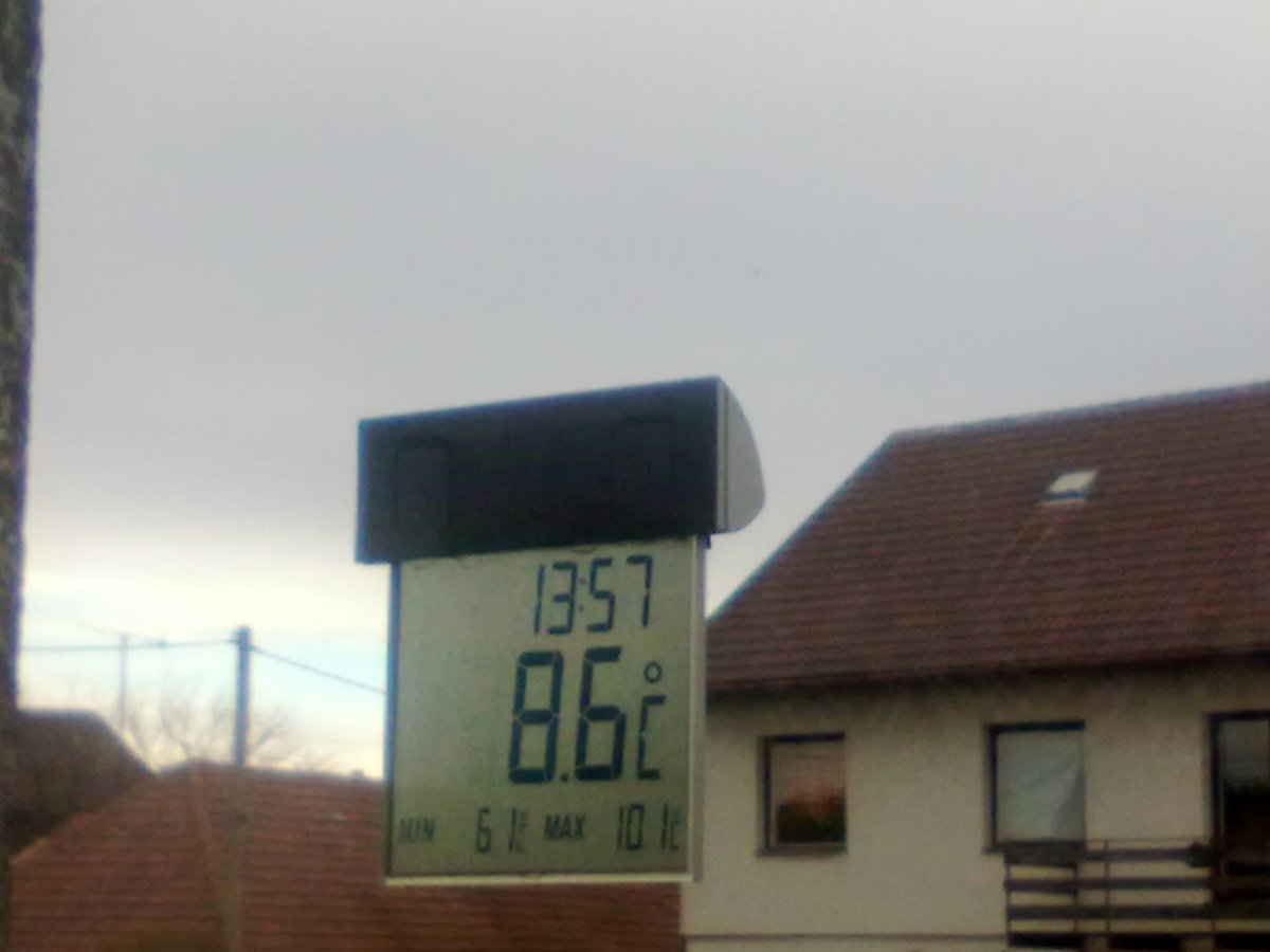 Skoro zataženo, SZ vítr 18 km/h, tlak 1015,4 hPa a vlhkost 78 %.