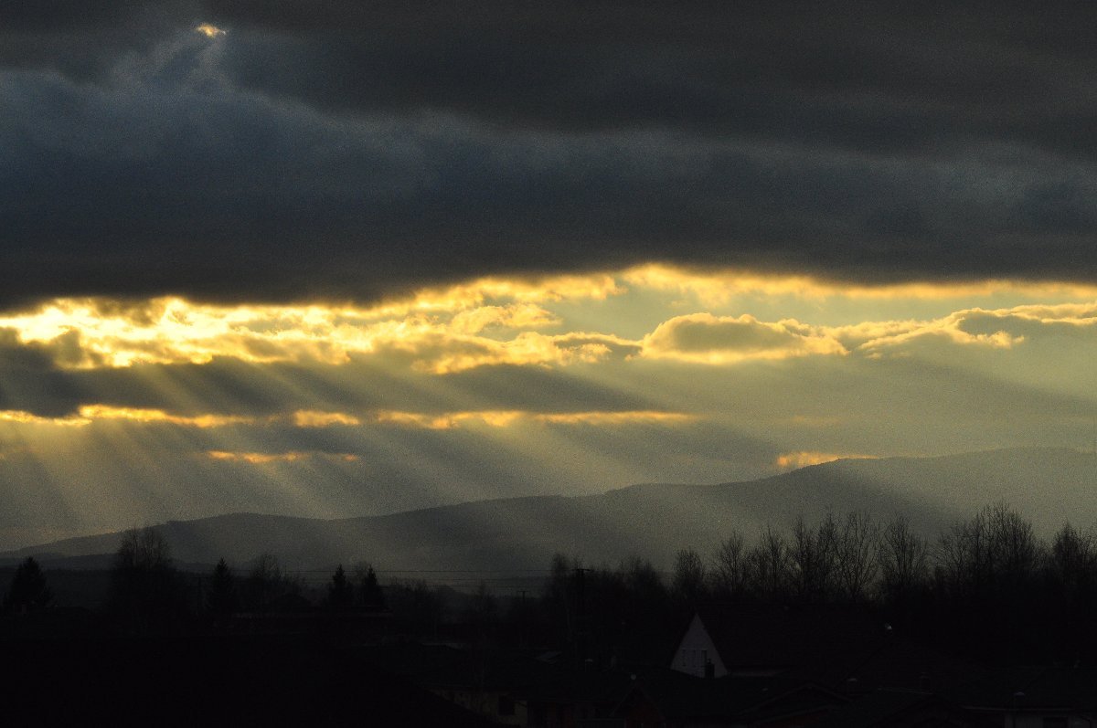 Slabý vítr,tlak 1019hPa,vlhkost 62%.Štědrovečerní západ Slunce.