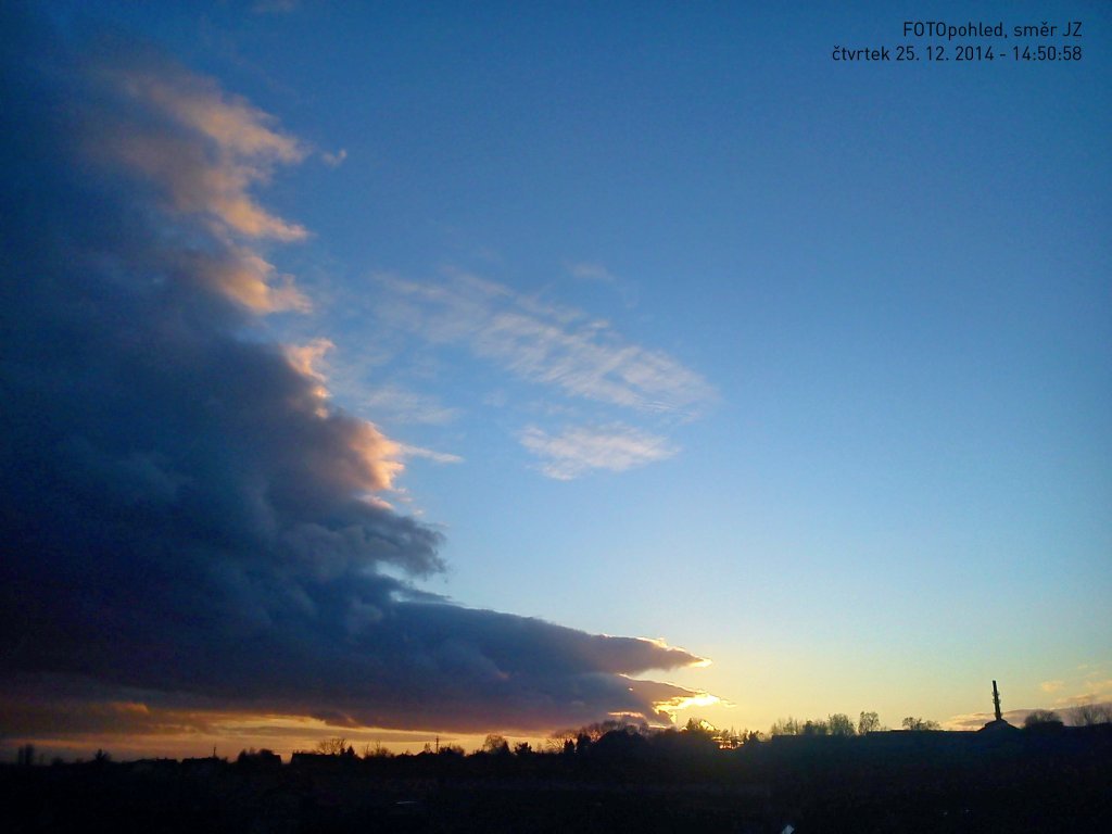 Tlak 1022 hPa, vlhkost 60% vítr západní 13,7 km/h Za zády je jasno, jinak se nějak ochlazuje a celkově je to počasí nějaké takové divné. Foceno před barákem....