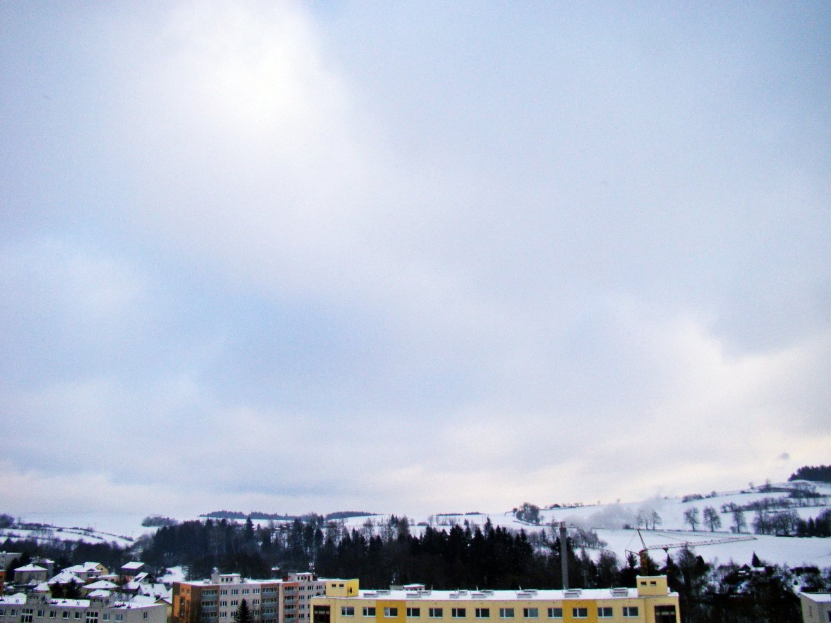 Snížek poletuje. Vítr V, 3,6 m/s.