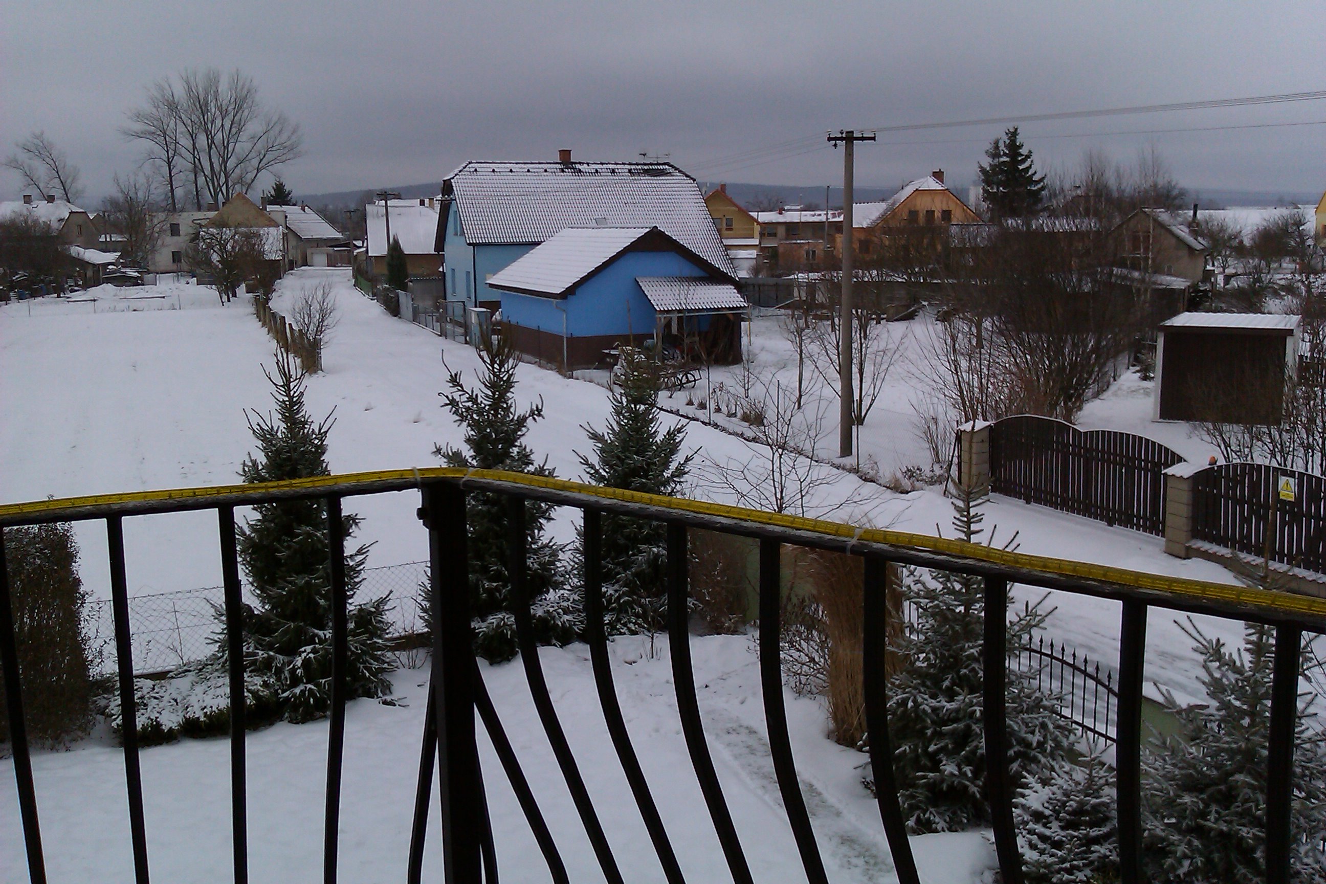 Zataženo,sněží,slabě mrzne,ale sníh je mokrý. Tlak 1006,0 hPa, vlhkost 87%, vítr S 1 m/s.