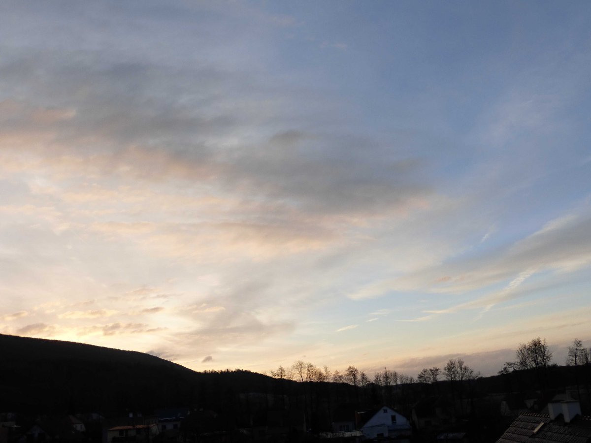 Při zemi teplota -1,2°C, nárazový Z vítr oproti noci zeslábl.