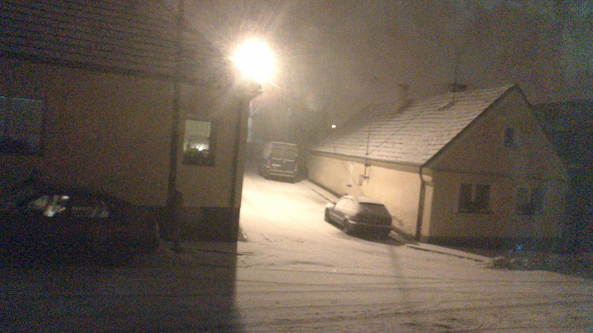 Tak už i tady začalo chumelit... Tlak 1014 hPa, vlhkost 77% vítr se zklidnil a je bezvětří...