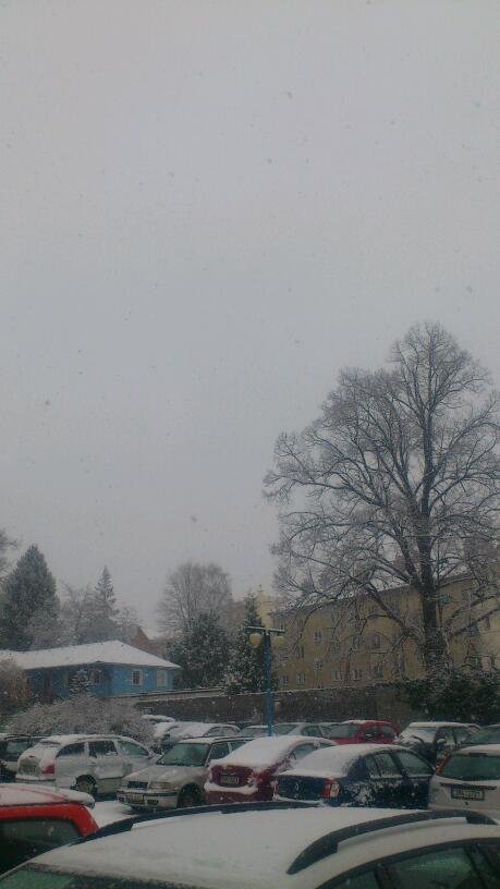 po neuvěřitelné jasné noci je zataženo, fouká vítr - foto z 2015 01 05 v 09:23 zachycuje stopy noční jízdy sypače - o té doby nechumelilo