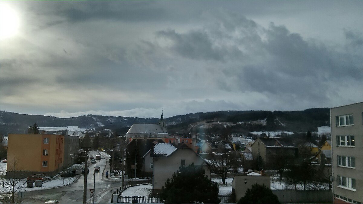 po nočním dešti a oteplení sníh výrazně odtál, a stále pomalu taje, ráno místy ledovka, mírný vítr