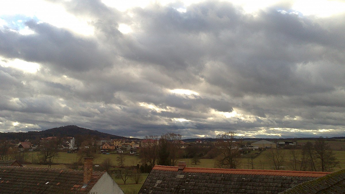Sníh už skoro roztál, západní vítr 40 km/h, tlak 1005,3 hPa a vlhkost 97 %.
