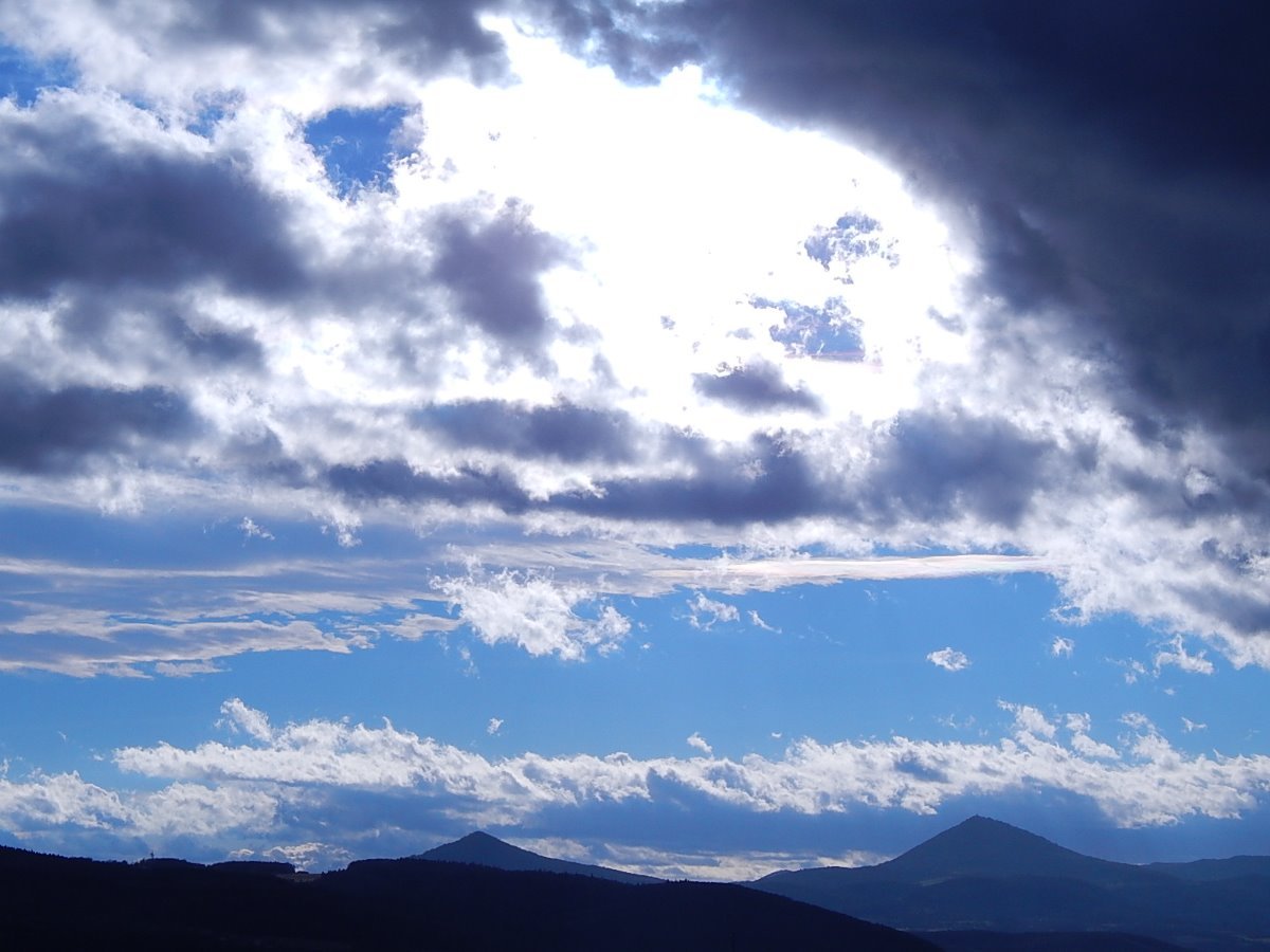 Tlak 1013 hPa, vlhkost 70% vítr západní 34,6 km/h na jihu ještě zataženo, jinak se to docela protrhává...
