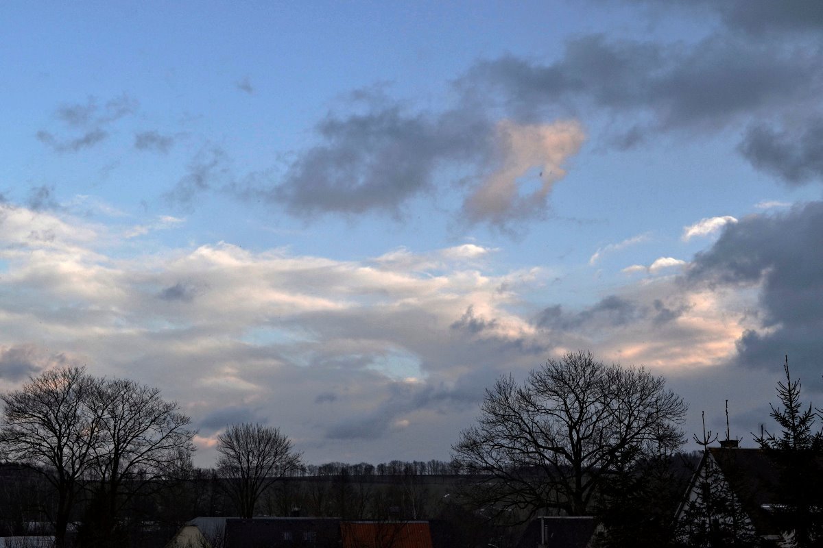 Velmi hustě sněží se silným západním větrem, i když to na foto moc není poznat. Vločky lítají "vodorovně"...:))