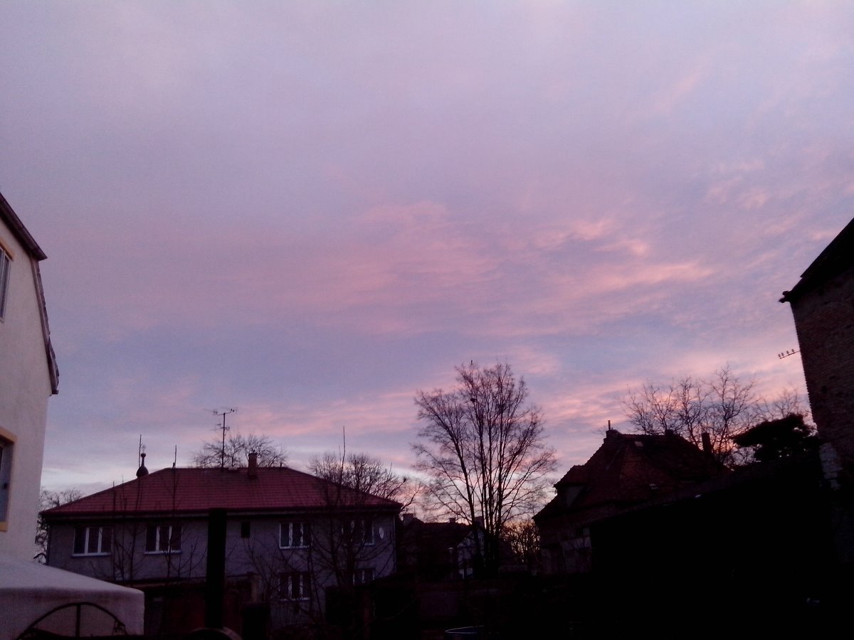Oblačnost 2,2%, zákl.oblačnosti 463,47m.n.m., tlak 1021,2hPa, dohlednost 40km, rel.vlhkost 95,2%, abs.vlhkost 3,76g/m3, SV větřík 51° 6,12km/hod.(2 Bft), poc.teplota -6,51°C, ochl.větrem -5,39°C, tepl.rosného bodu -3,56°C, tepl.mraků -7,46°C, délka dne 8h40min.