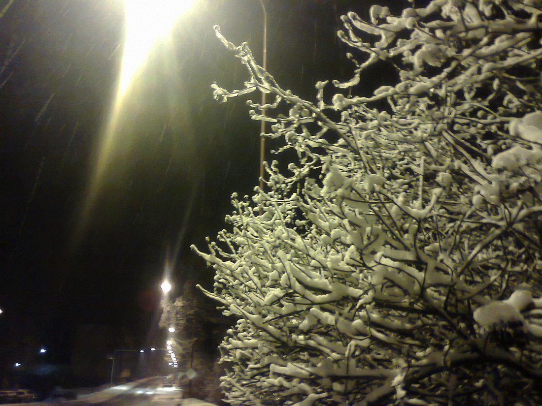 Hezká zimní kulisa, slabě sněží, severní vánek, vlhkost 99%, tlak 1027 hPa.