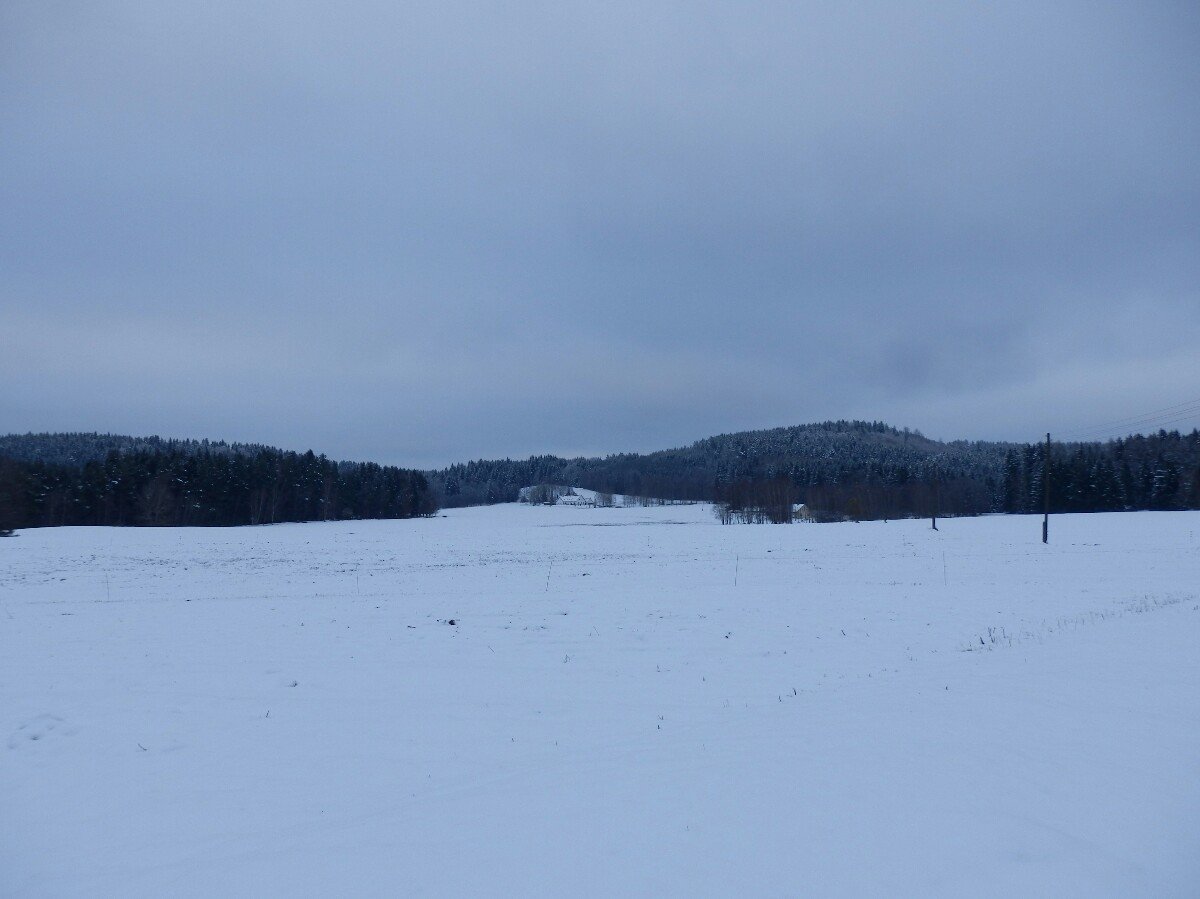 celý den šedivo, teplota +2°, ani vítr nefoukal - foto z 2015 01 19 v 12:17 pohled na pole - místo sněhu kaluže vody přesto, že dnes nepršelo