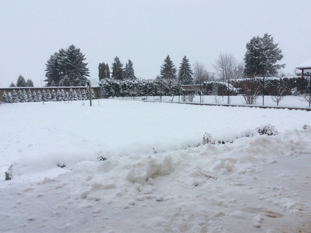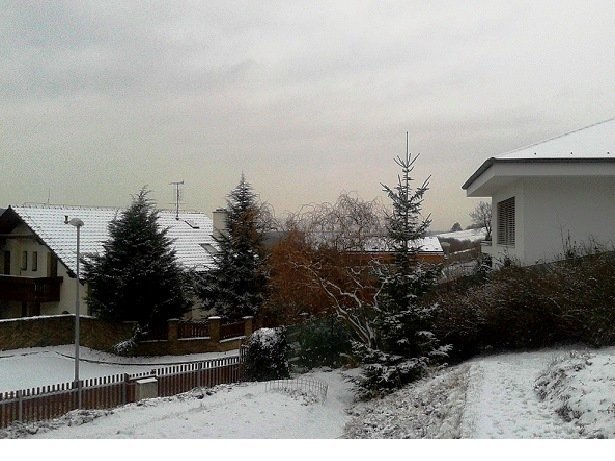 Tolik sněhu už dlouho nebylo, naposledy v roce 2013. Stále slabě sněží, sníh je ale mokrý a těžký.