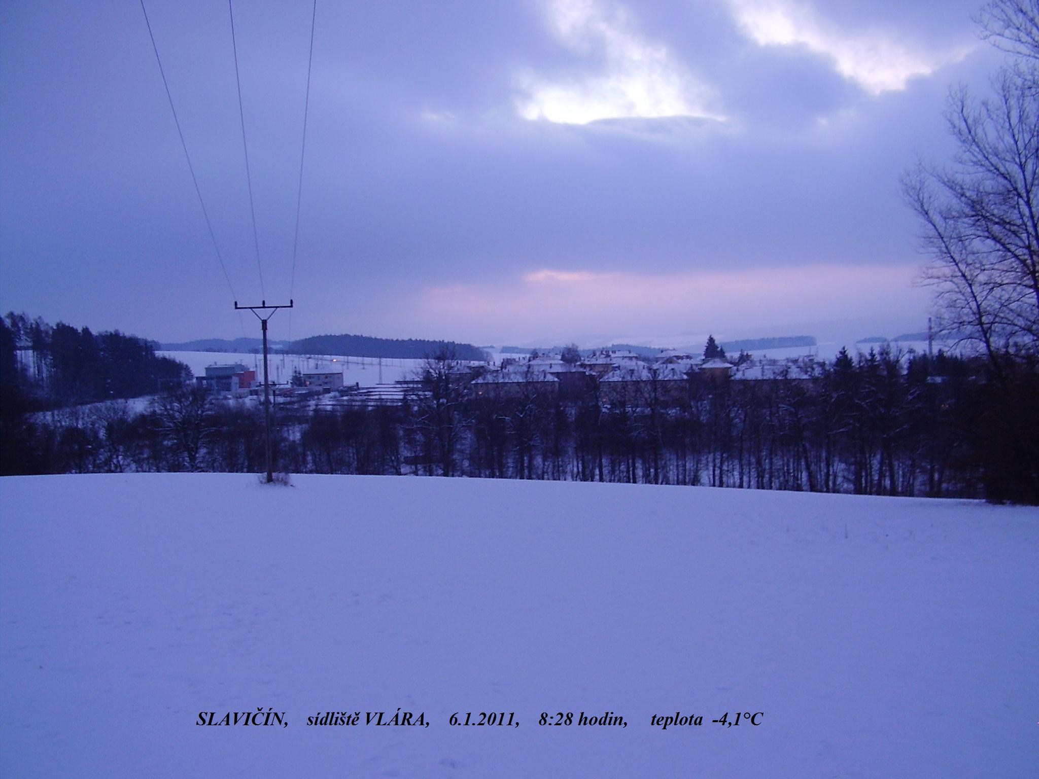 Zataženo,teplota se po dlouhé době vyšplhala do plusové polohy.Tlak 1015 h Pa,vlhkost 80%, vítr JV 5,3 m/s,viditelnost 9000 m.