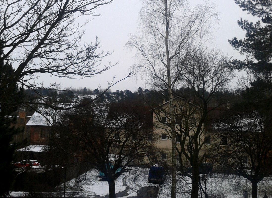 Ochlazuje se poměrně rychle, zatáhlo se, začal foukat čerstvý vítr. Pouze v lese drží sněhová pokrývka, v obci jen zbytky. Foto ze včerejšího slunného odpoledne.