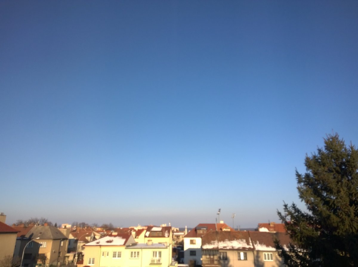 Polojasno, západní vánek, tlak 1019 hPa.