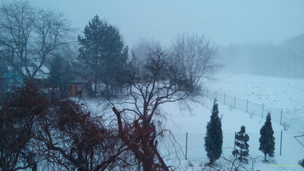 vlhkost 53%, vítr SZ v nárazech až 10,7 km/h, něco málo nového sněhu