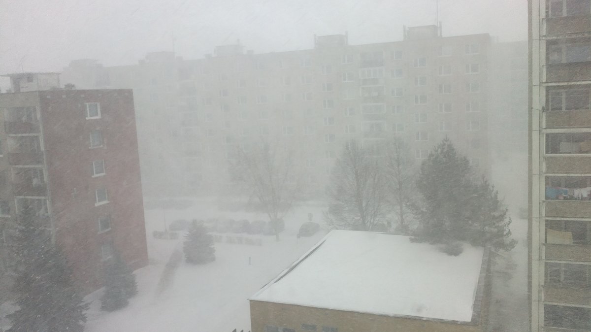 silná sněhová přeháňka, ochladilo se, vítr SZ nárazy až 12m/s, jazyky, sníh 8cm. tlak stoupá 1017hPa.