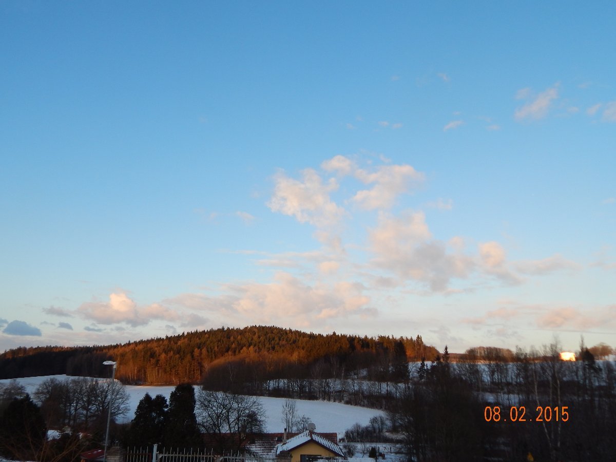 Sněhové přeháňky, silný vítr. Tlak 1012 hPa, vlhkost 750, vítr V, 5 m/s.