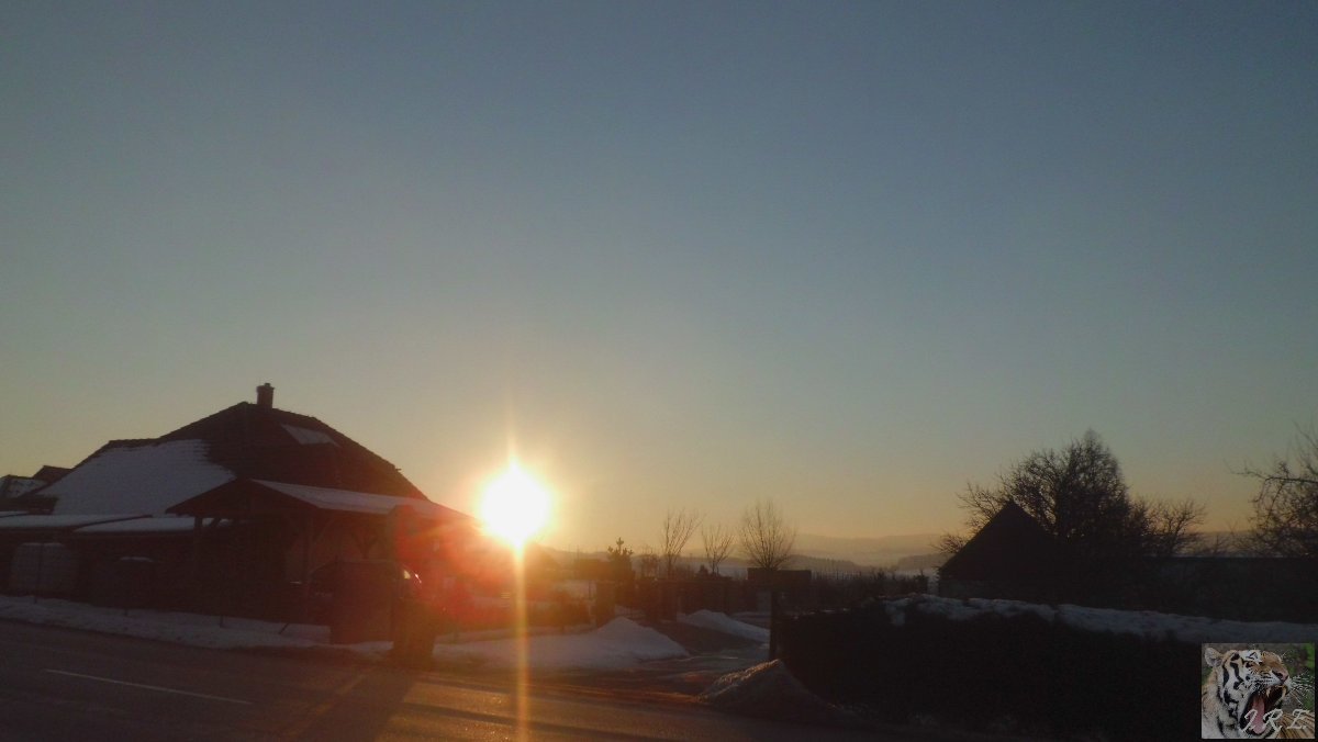 Nádherné jasné ráno. Je sice mlha, ale sluníčko už svíti skrz. Zároveň však docela mrzne. Tlak: 1024 hPa, bezvětří.