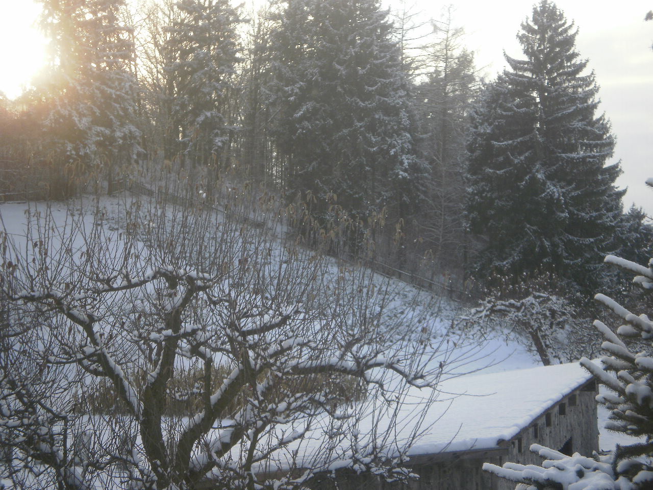 Zataženo, začalo hustě sněžit, tlak 1014,4 hPa, vítr JJZ 6 m/s, vlhkost 86%, viditelnost 4000 m.