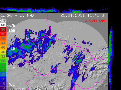 Zataženo, od rána nepřetržitě sněží, tlak 1010 hPa, vítr JJV 9 km/hod., vlhkost 91%, viditelnost 3500 m.