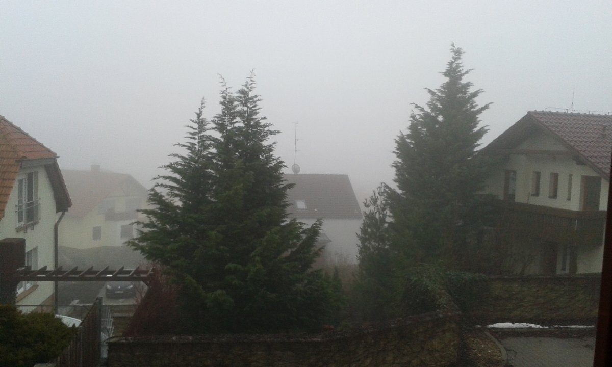Mlha, oblačnost 100%, zákl.oblačnosti 420,80m.n.m., tlak 1006,6hPa, dohlednost 1km, rel.vlhkost 97,8%, abs.vlhkost 5,28g/m3, SSV vánek 25° 2,88km/hod.(1 Bft), poc.teplota -0,67°C, ochl.větrem 1,41°C, tepl.rosného bodu 1,29°C, tepl.mraků 0,52°C, délka dne u nás = 10hod.42min.19vt.