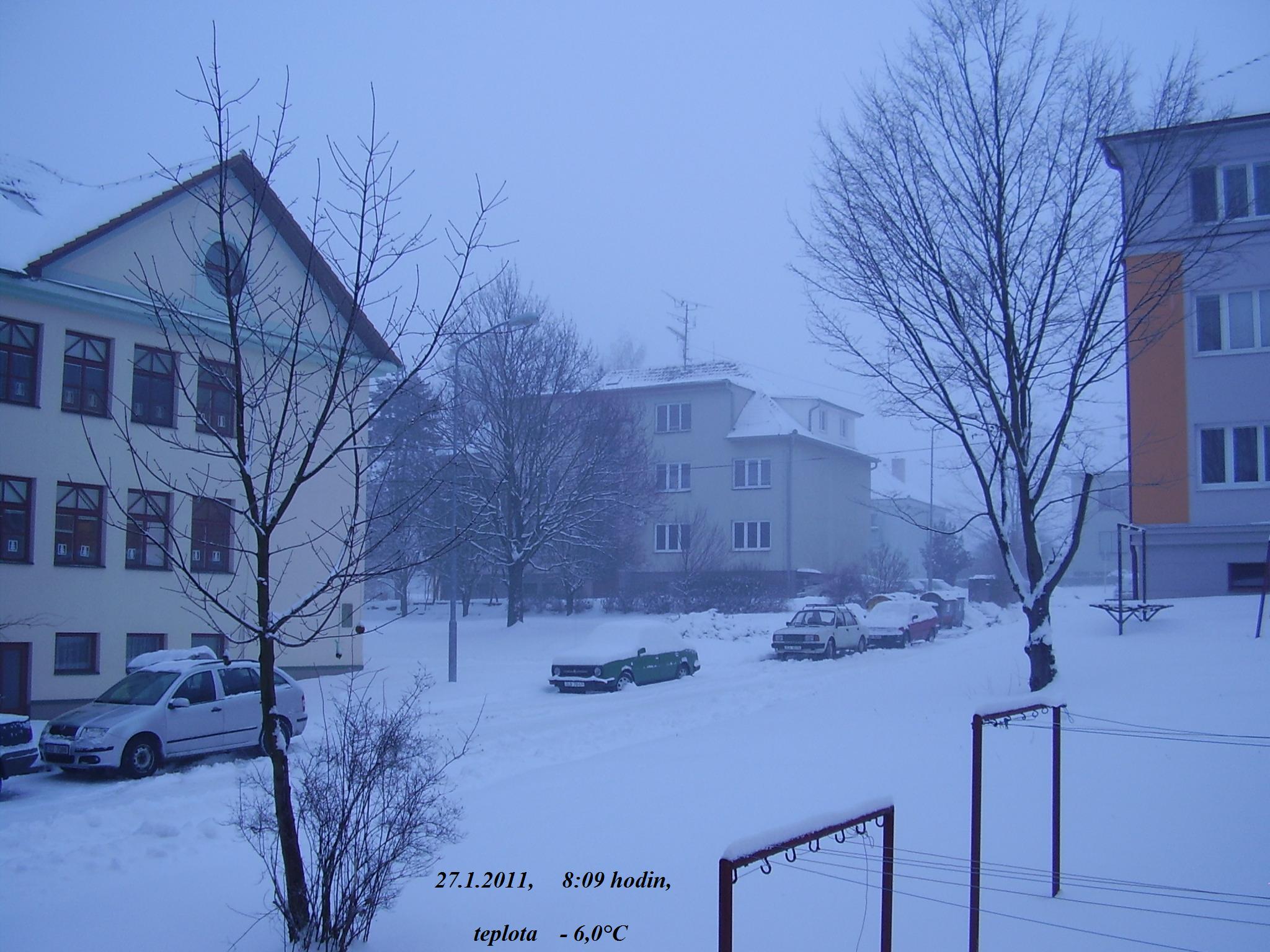 zataženo, 9 cm teď už zmrzlého sněhu, škoda, že každý den odtává mohlo ho být o pár cm víc :-)