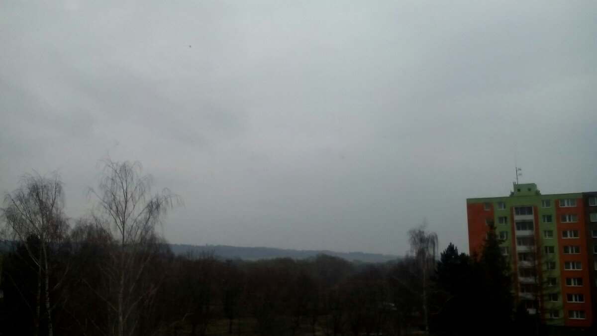Oblačnost 96,6%, zákl.oblačnosti 500,04m.n.m., tlak 1018,9hPa, dohlednost 20km, rel.vlhkost 93,4, abs.vlhkost 5,70g/m3, ZJZ vánek 240° 2,88km/hod.(1 Bft), poc.teplota 1,21°C, ochl.větrem 3,38°C, tepl.rosného bodu 2,44°C, tepl.mraků 1,53°C, délka dne u nás=10hod.56min.37vt.