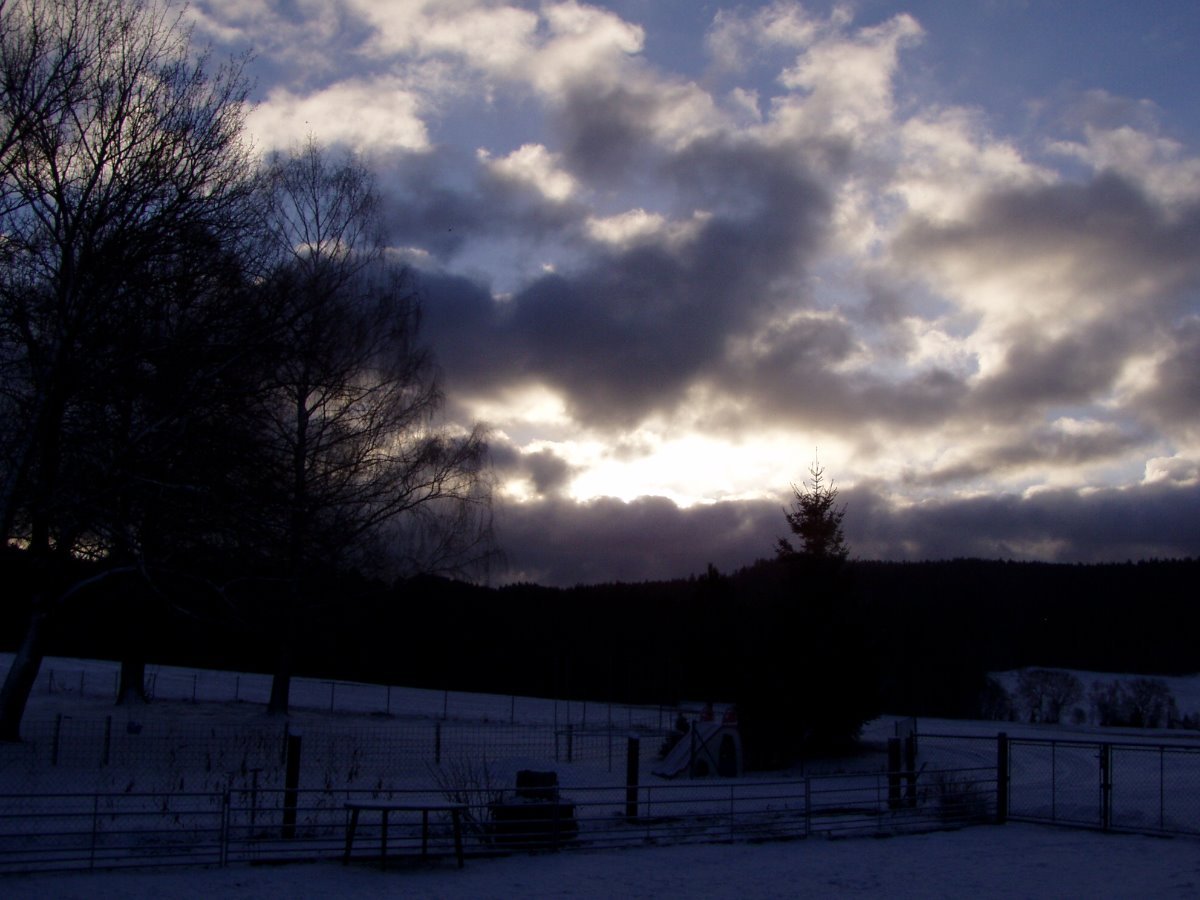 Tlak 1020 hPa, vlhkost 89% vítr jihozápadní 10,1 km/h. Pocitová teplota -3 C. Západní pohled na údolí farmy...