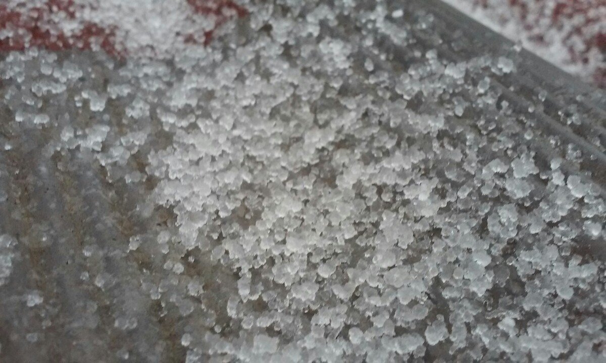Sněží. Tlak 1010 hPa, vlhkost 80%, vítr S.