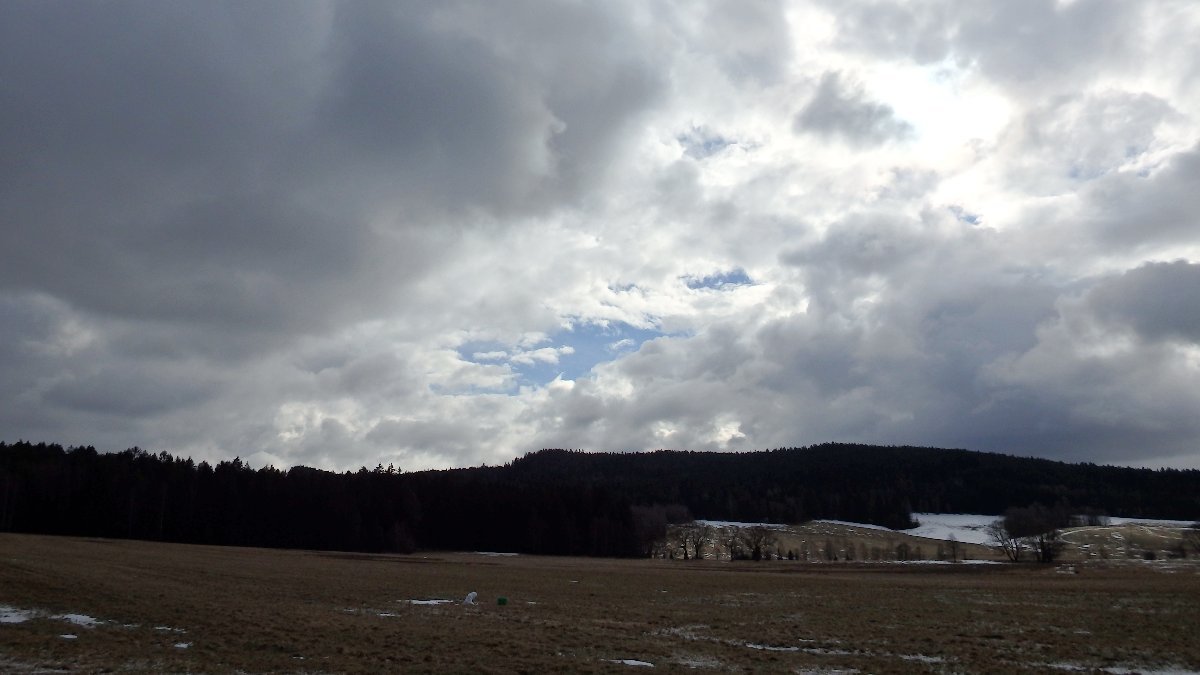 Snížek už taje, tlak 1012 hPa, vlhkost 70%, vítr SV, 1,4 m/s.